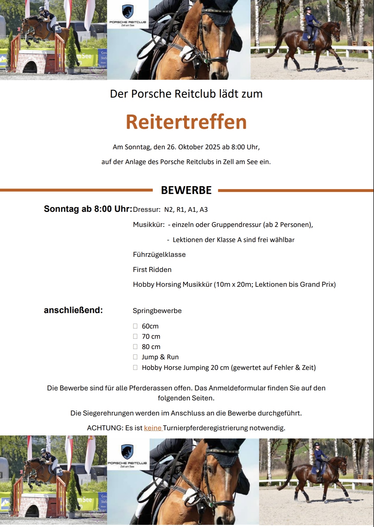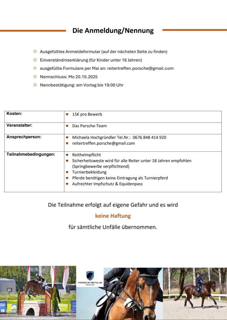 Am 26. Oktober 2025 ist es wieder soweit – ein Tag voller spannender Bewerbe, von Dressur über Springen bis hin zu Hobby-Horsing! 👏
